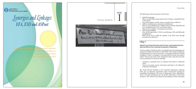 お客様公益財団法人ユネスコ・アジア文化センターご依頼の種類書籍制作 書籍・雑誌名Synergies and Linkages EFA, ESD and ASPnetご利用サービス書籍翻訳・校正 | 英文テープ起こし |デザイン | 組版 | 書籍印刷