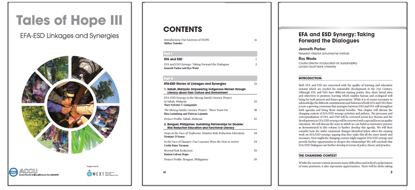 お客様公益財団法人ユネスコ・アジア文化センターご依頼の種類書籍制作 書籍・雑誌名Tales of Hope III: EFA-ESD Linkages and Synergiesご利用サービス英文校正 | デザイン | 組版 | 印刷